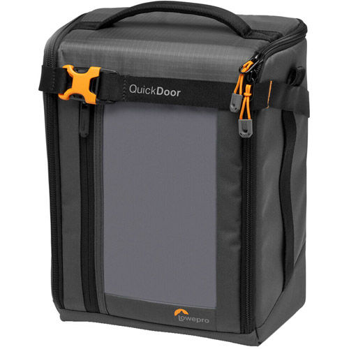 An interior pocket can hold a memory card and the exterior pocket stores cords, cables, lens caps, and accessories. The new QuickDoor entry system provides fast and easy access to gear, while a locking strap keeps everything secured right where you want it. Choose between carrying the organiser alone or inside a larger bag.