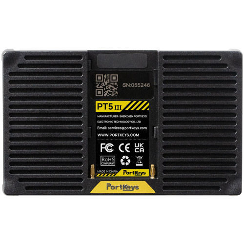 On the back of the Portkeys PT5 III is an integrated battery plate compatible with Sony NP-F style batteries. With a low power consumption of just 7W, a compact and lightweight Sony NP-F 550 battery can power the monitor for over two hours. For extended usage, you can connect the PT5 III to an external power source using its USB-C port. Additionally, there is a USB-A port located at the bottom of the monitor for performing firmware updates and uploading custom LUTs. The Portkeys PT5 III features two 1/4 “-20 mounting points on the bottom and right sides of the monitor equipped with locating pins for attaching it to your camera, camera rig, tripod, or gimbal. Last but not least, the PT5 III ships with everything you need to shoot right out of the box, including a safety box, a sunshade, a set of rubber covers, a USB key, a full-size to full-size HDMI cable, a full-size to micro-HDMI cable, and a Portkeys MH-2 monitor mount.