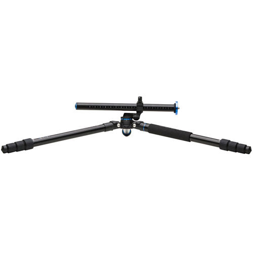 Each one of the tripod's legs features a 4-section design allowing for the optional deployment of different leg sections to achieve varying heights. The legs also utilize Benro's sealed twist-locks which help to resist dust and moisture. One of the legs, marked with a blue ring, can also be joined with the center column to form a monopod - a useful feature for shooting in environments where tripods may not be permitted. The center column also features a unique lateral arm function which allows the column to tilt horizontally and lock in a wide range of different angles and positions. The tripod's top plate features a standard 3/8"-16 mounting screw ideal for attaching most common tripod heads. Additionally, the FGP28A includes a carrying case and a set of interchangeable spiked feet for increased stability in dirt, sand, mud, and snow.