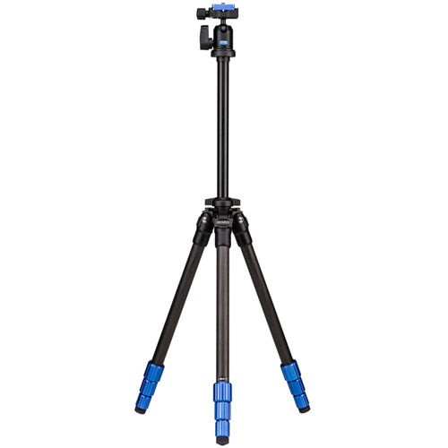 Benro Slim features a lightweight magnesium shoulder which has 3 leg positions and each leg can be positioned individually for uneven terrain. Staying level is made easy with included bubble levels on the tripod shoulder and on the quick release clamp. The removable single action ballhead has an oversized ratchet style lock knob for easy operation and a panoramic scale. The ballhead includes a blue anodized aluminum arca-swiss style quick release plate with a D-ring 1/4"-20 camera screw.