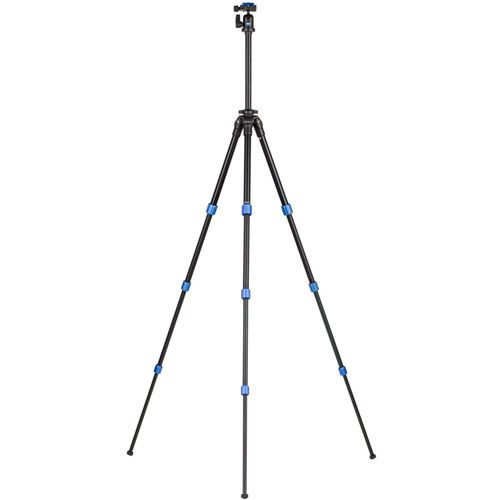 The Slim tripod legs feature anodized aluminum twist locks that only require a quick half turn to lock and unlock. A grooved center column prevents twisting when in use and can be reversed for low to the ground shots. A weight hook is located underneath the center column for windy conditions. The rubber feet on the tripod are fixed. Benro Slim features a lightweight magnesium shoulder which has 3 leg positions and each leg can be positioned individually for uneven terrain. Staying level is made easy with included bubble levels on the tripod shoulder and on the quick release clamp. The removable single action ballhead has an oversized ratchet style lock knob for easy operation and a panoramic scale. The ballhead includes a blue anodized aluminum arca-swiss style quick release plate with a D-ring 1/4"-20 camera screw.