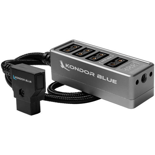 The Kondor Blue D-Tap Hub has become infamous for its all-metal CNC aluminum enclosure and with our latest updates we’ve made it even better. The D-Tap Hub now features multiple mounting points on two sides and the bottom—all with ARRI anti-twist holes. This makes mounting a range of accessories that much better and more secure. In an effort to keep the profile for this D-tap splitter as thin as possible, the mounting holes aren’t quite as deep as on a cage. Right out of the gate, accessories such as their Monitor Cage Rails with interchangeable anti-twist pins work great and their anti-twist NATO Clamp has a Cinderella fit.